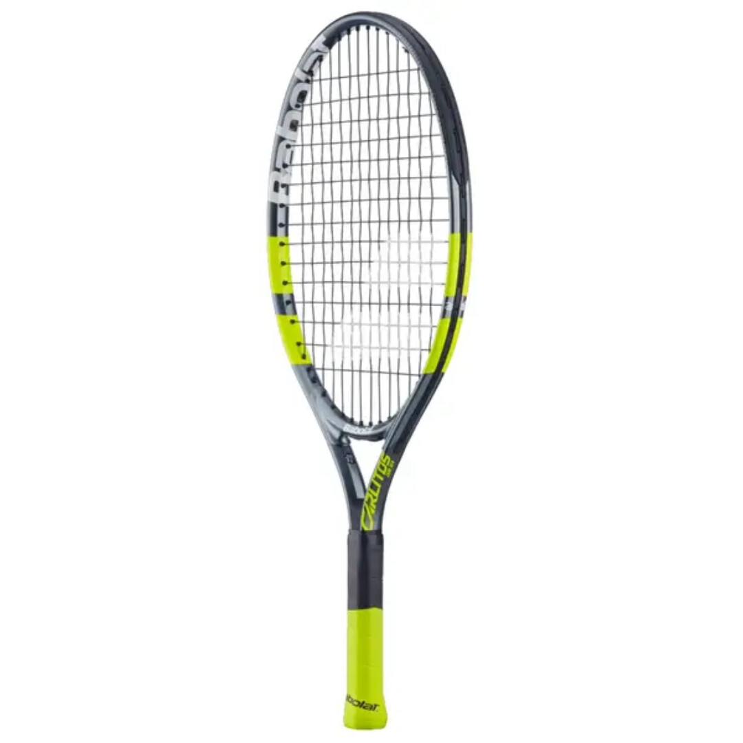 Детская теннисная ракетка Babolat Carlitos Junior 21 в расцветке Grey/Fluo — это легкая алюминиевая модель, дизайн которой вдохновлен профессиональной ракеткой чемпиона Карлоса Алькараса. Она создана специально для начинающих игроков и помогает быстрее освоить технику благодаря интуитивно понятным визуальным подсказкам на раме.