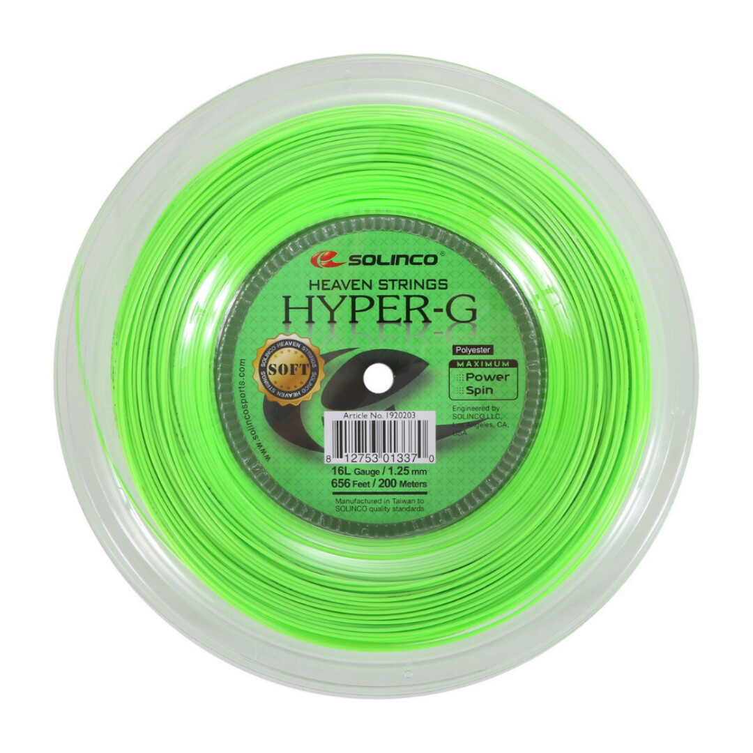 Hyper-G SOFT от Solinco - это недавно разработанная, более мягкая, высокопроизводительная и универсальная струна из со-полиэстера, разработанная для обеспечения удобства игры и контроля, обеспечивая при этом невероятную мощность и интенсивное вращение.