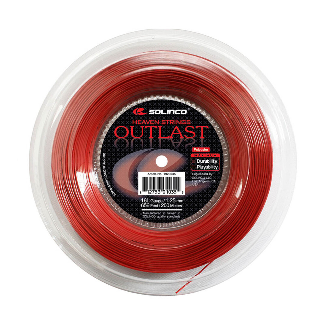 Solinco Outlast - недорогая, но качественная струна от Solinco. По ощущениям многих игроков, дает более мягкое чувство, чем топовые струны Solinco. Дает хорошее вращение, неплохой контроль и при этом неплохой комфорт. Долговечная струна.